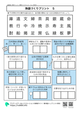 熟語づくりプリント 【熟語づくりプリント4】個人でも施設でも使える無料脳トレプリント!