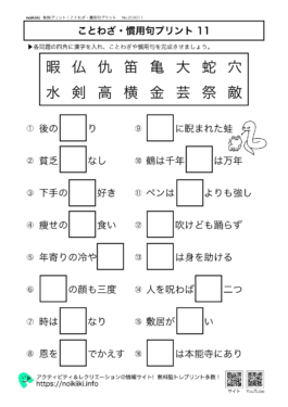 ことわざ・慣用句プリント 【ことわざ・慣用句プリント11】聞いたことあることわざ多数!脳トレプリント