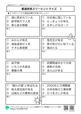 都道府県クイズプリント 【都道府県クイズプリント】スリーヒントクイズ1!無料脳トレプリント
