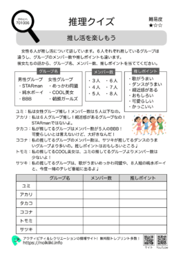 推理問題 【推理クイズ:推し活を楽しもう】チャレンジしてみて!頭を使う脳トレプリント!