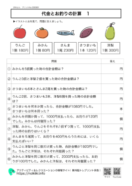 無料プリント教材 【算数プリント!割引計算】いくらになる?脳トレ算数プリント