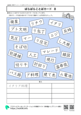 ばらばらことば 【ばらばらことばカード4】使いやすい無料ダウンロードできる脳トレプリント