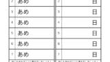 左側のひらがなを並べ替えて意味のある言葉にし、右側のマスに書き入れます。