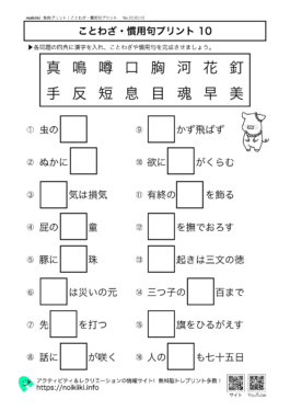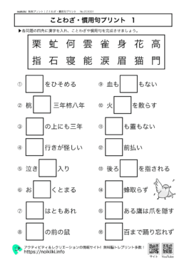 ことわざ・慣用句プリント 【ことわざ・慣用句プリント6】人気の無料プリント!挑戦してみて