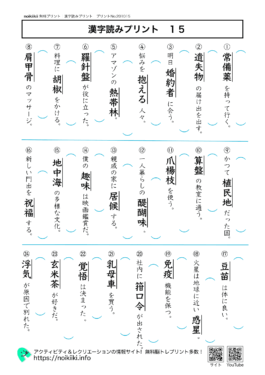 漢字読みプリント 【漢字読みプリント5】使いやすい脳トレ漢字プリント